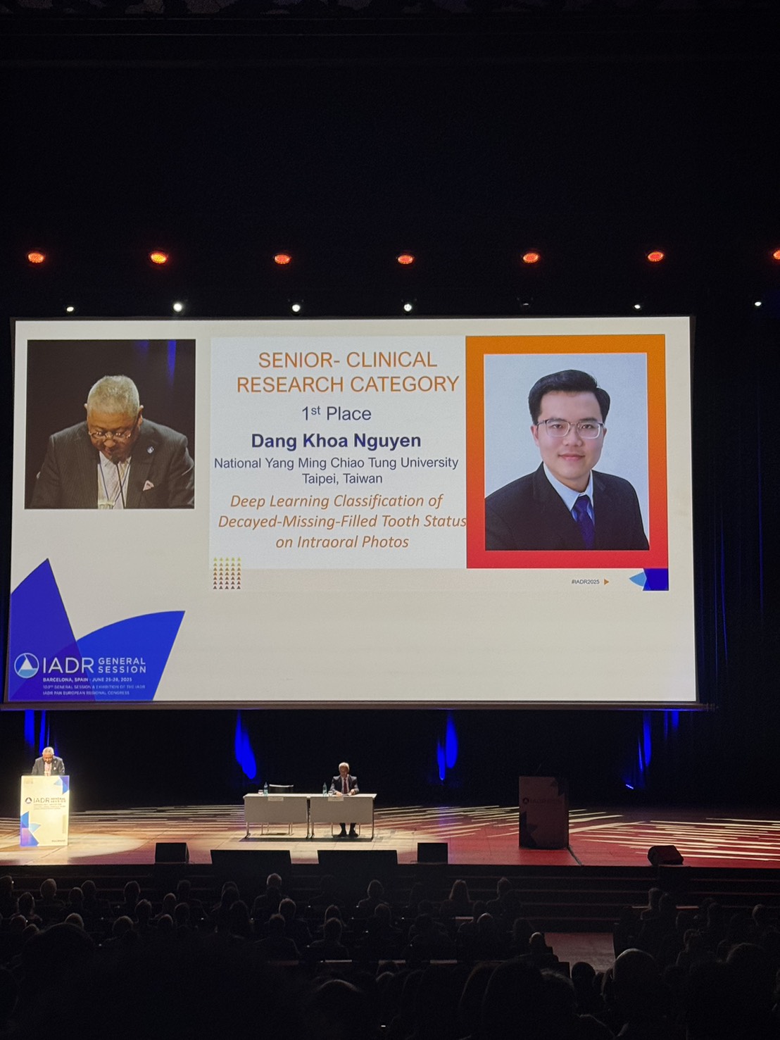 PhD candidate Dang Khoa Nguyen, under the supervision of Professor Ting-Han Wang, was awarded First Place in the Clinical Research Category at the prestigious IADR General Session 2025.